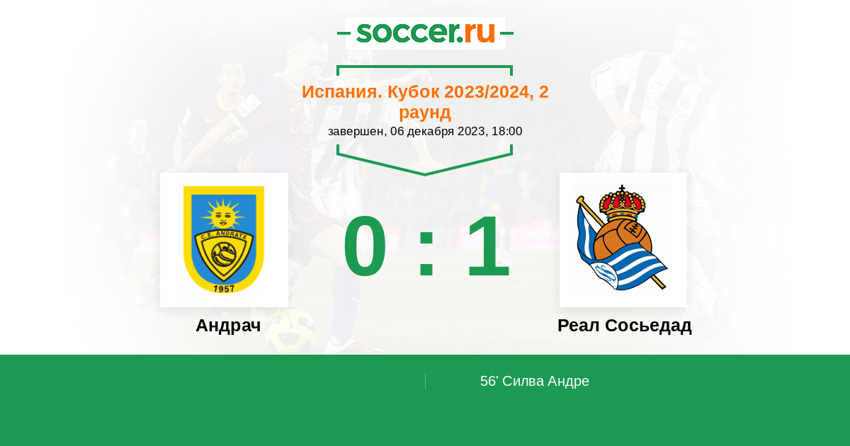 56' (0:1) Силва Андре (21) (Одриосола Альваро (2))