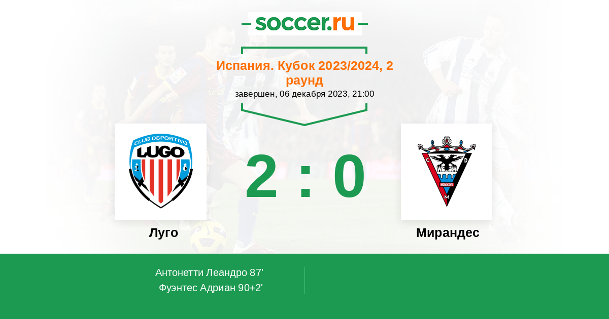 Гол90+2' (2:0) Фуэнтес Адриан (19)