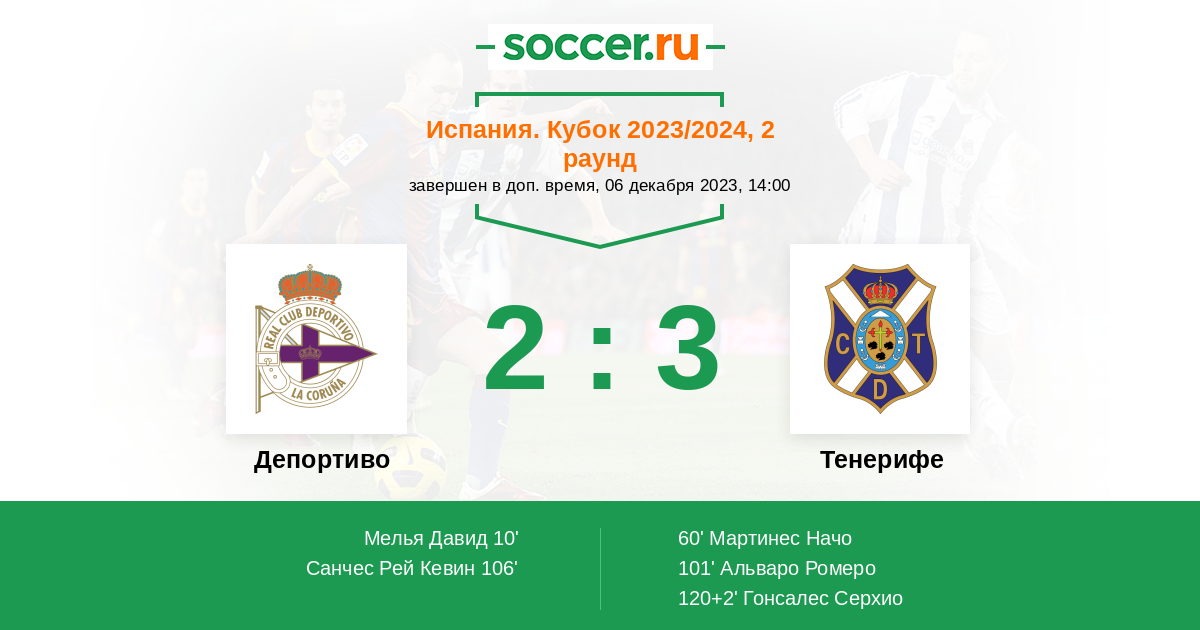 Протокол матча Депортиво против Тенерифе