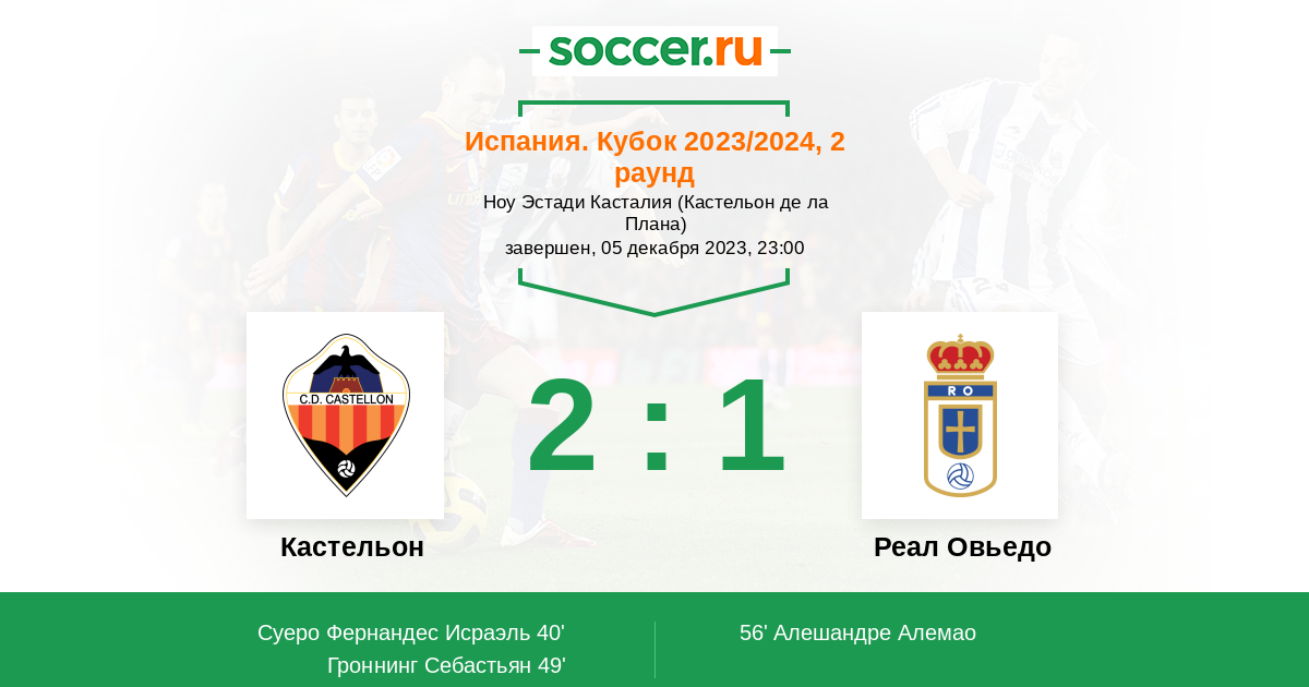 Протокол матча Кастельон против Реал Овьедо