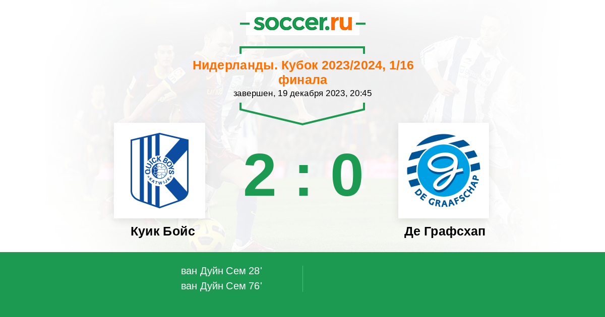 Протокол матча Куик Бойс против Де Графсхап