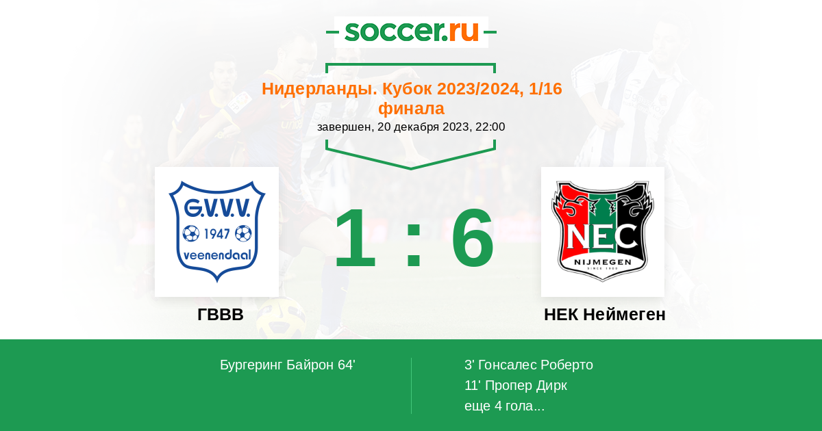 Протокол матча ГВВВ против НЕК Неймеген