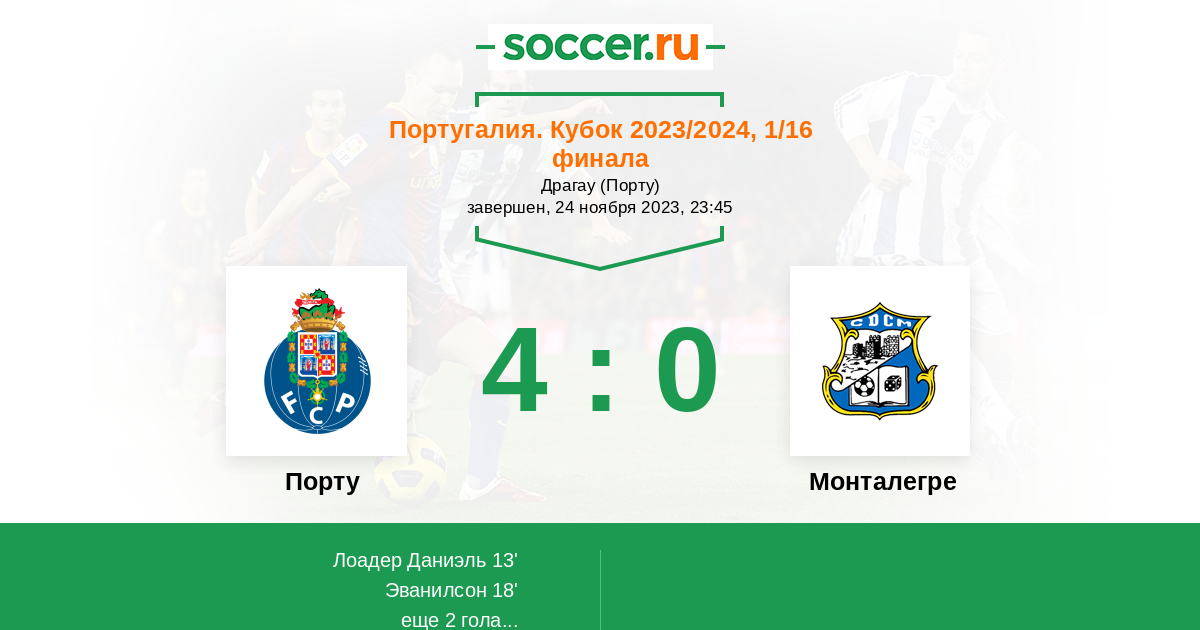 Протокол матча Порту против Монталегре