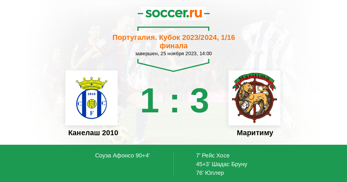 Протокол матча Канелаш 2010 против Маритиму