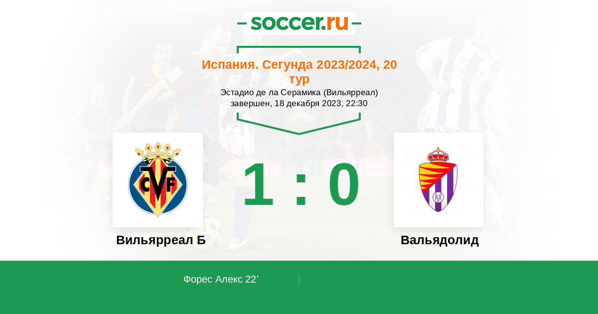 Протокол матча Вильярреал Б против Вальядолид