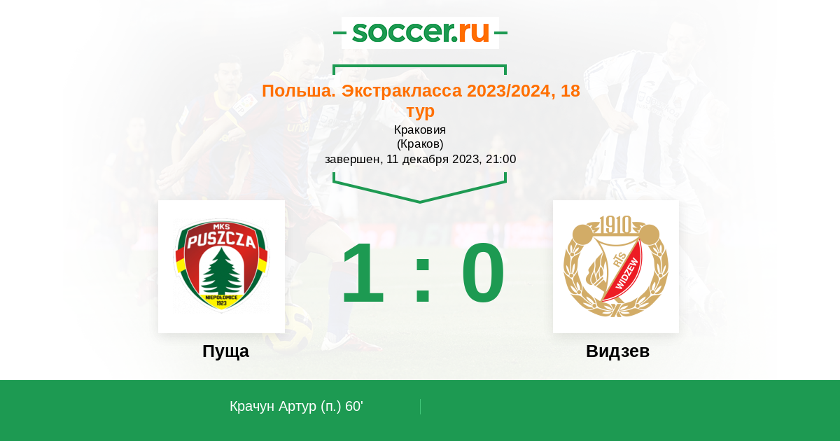 Протокол матча Пуща против Видзев
