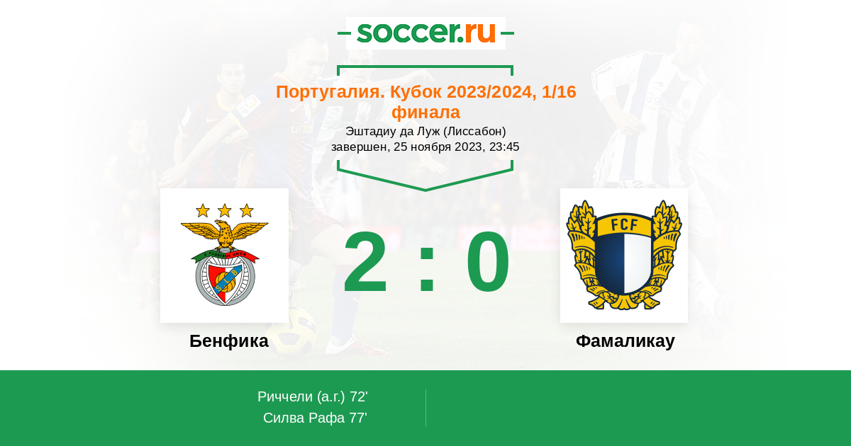 Протокол матча Бенфика против Фамаликау