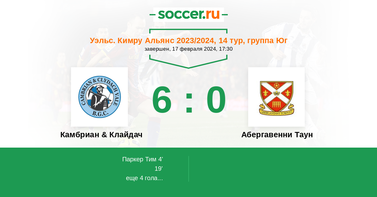 Протокол матча Камбриан & Клайдач против Абергавенни Таун