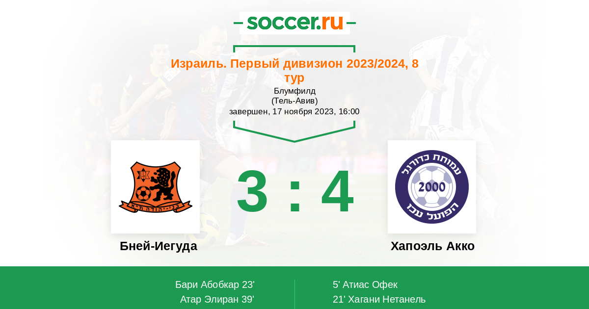 Протокол матча Бней-Иегуда против Хапоэль Акко