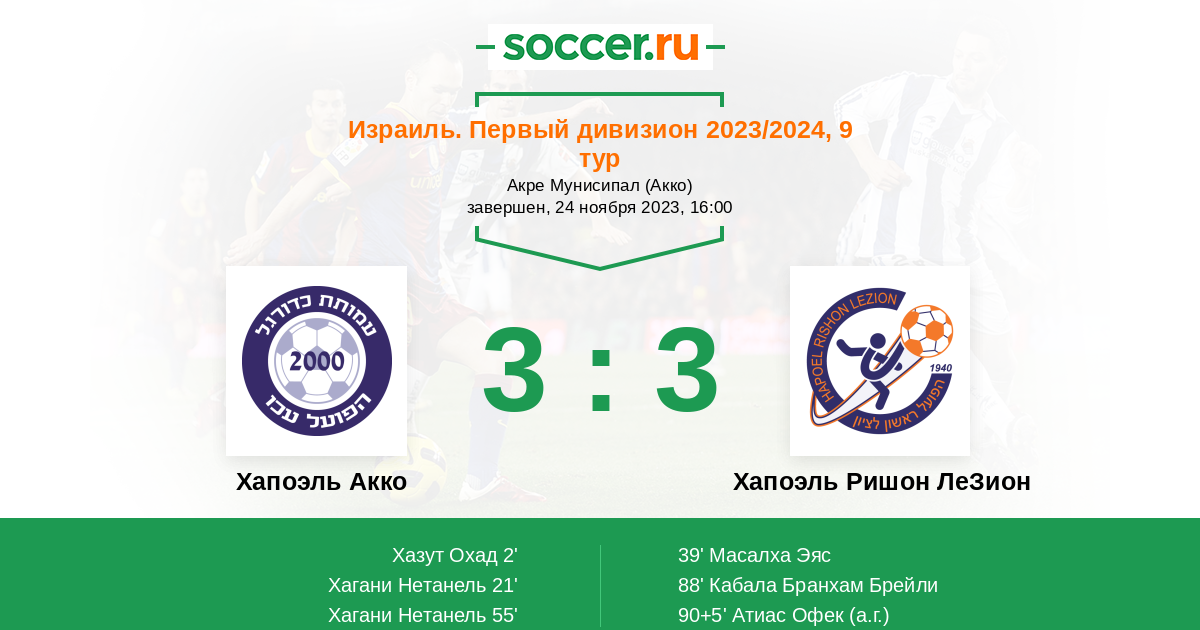 Протокол матча Хапоэль Акко против Хапоэль Ришон ЛеЗион