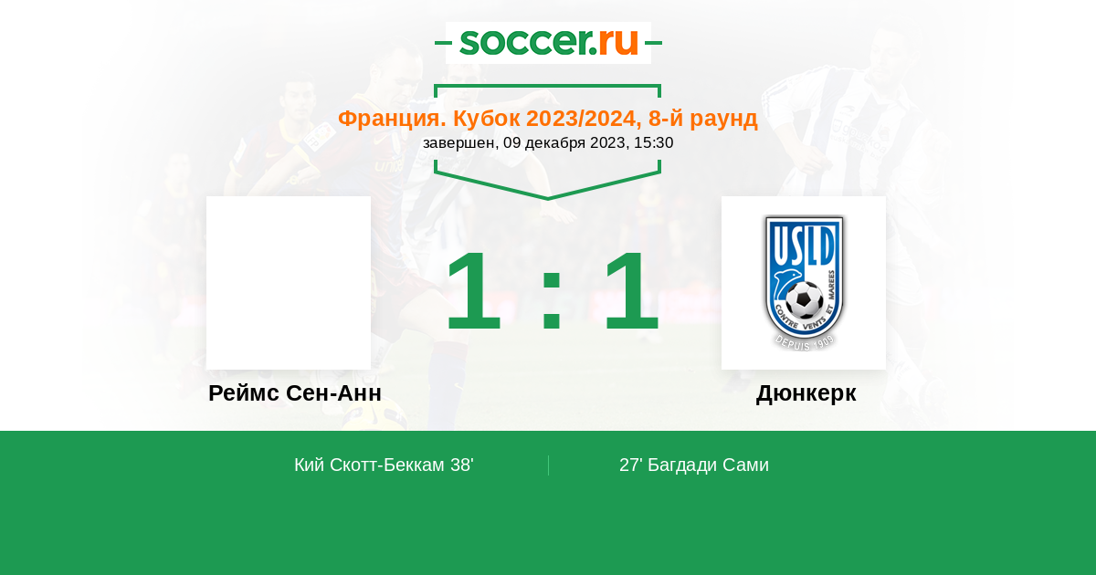 Протокол матча Реймс Сен-Анн против Дюнкерк