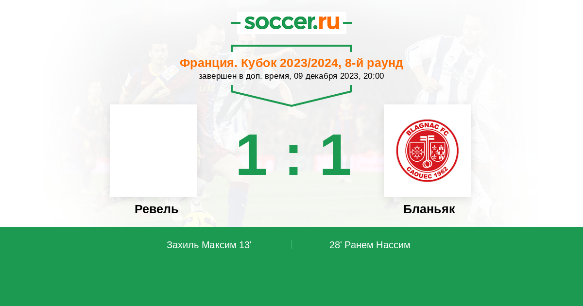 Протокол матча Ревель против Бланьяк