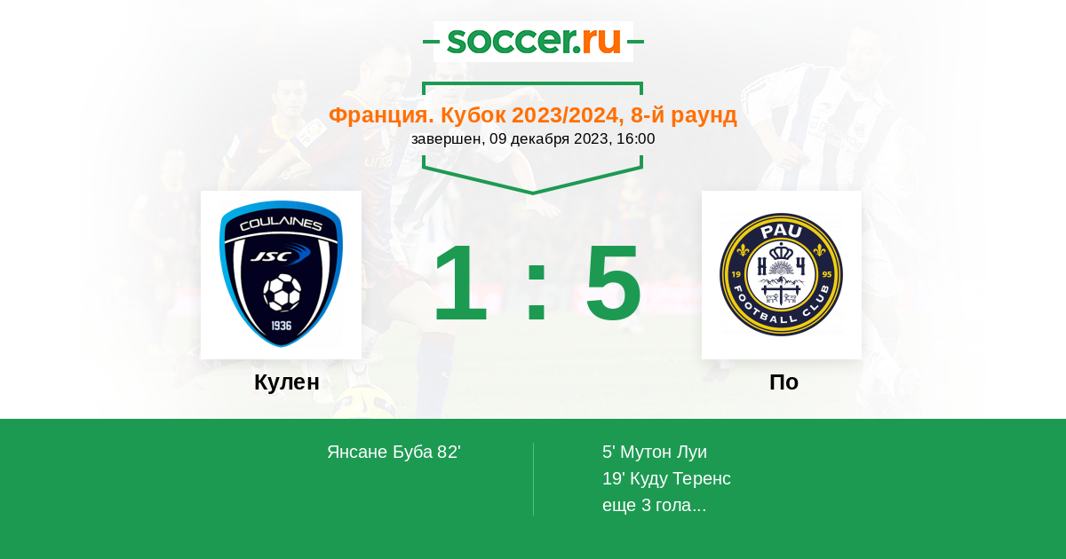 Протокол матча Кулен против По