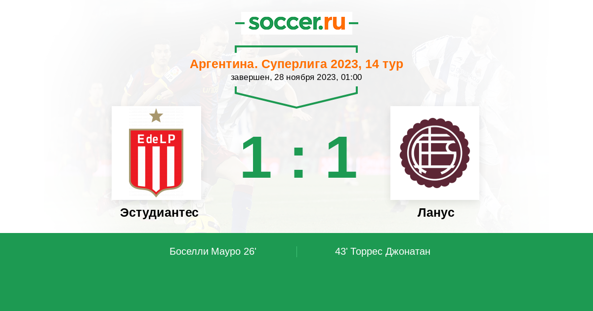 Протокол матча Эстудиантес против Ланус