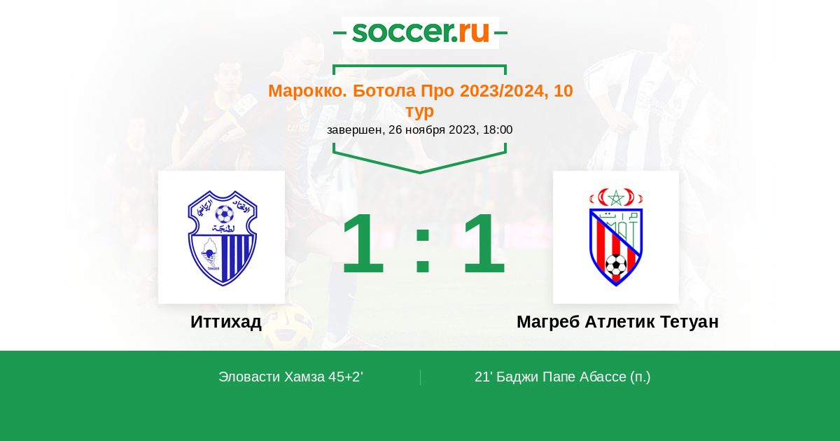 Протокол матча ИР Анже против Магреб Атлетик Тетуан
