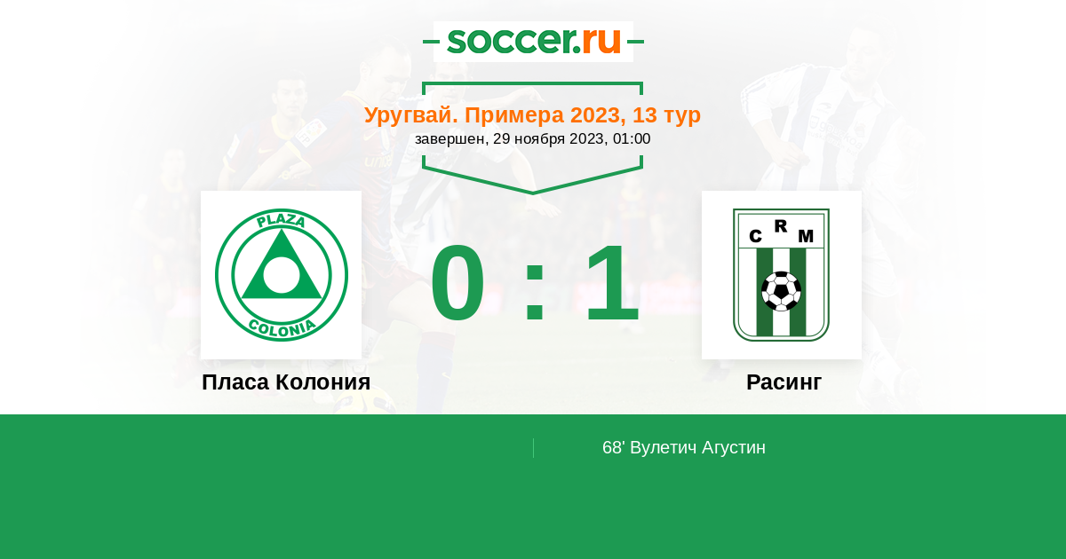 Протокол матча Пласа Колония против Расинг