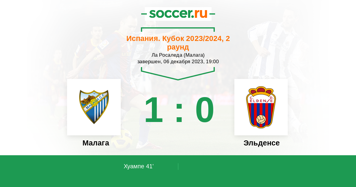 Протокол матча Малага против Эльденсе