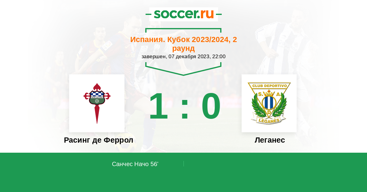 56' (1:0) Санчес Начо (11) (Пена Эбер (7))