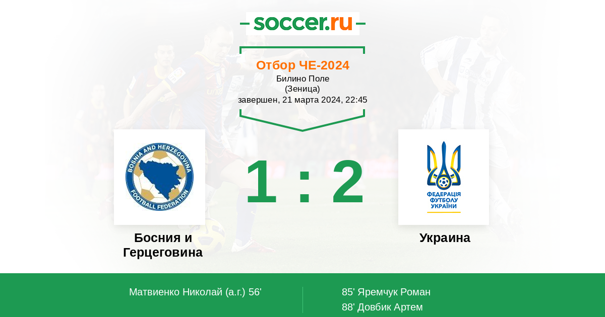 Протокол матча Босния и Герцеговина против Украина