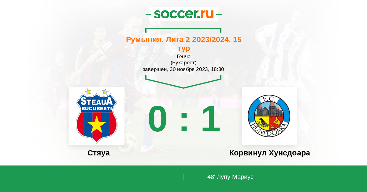 Протокол матча Стяуа против Корвинул Хунедоара