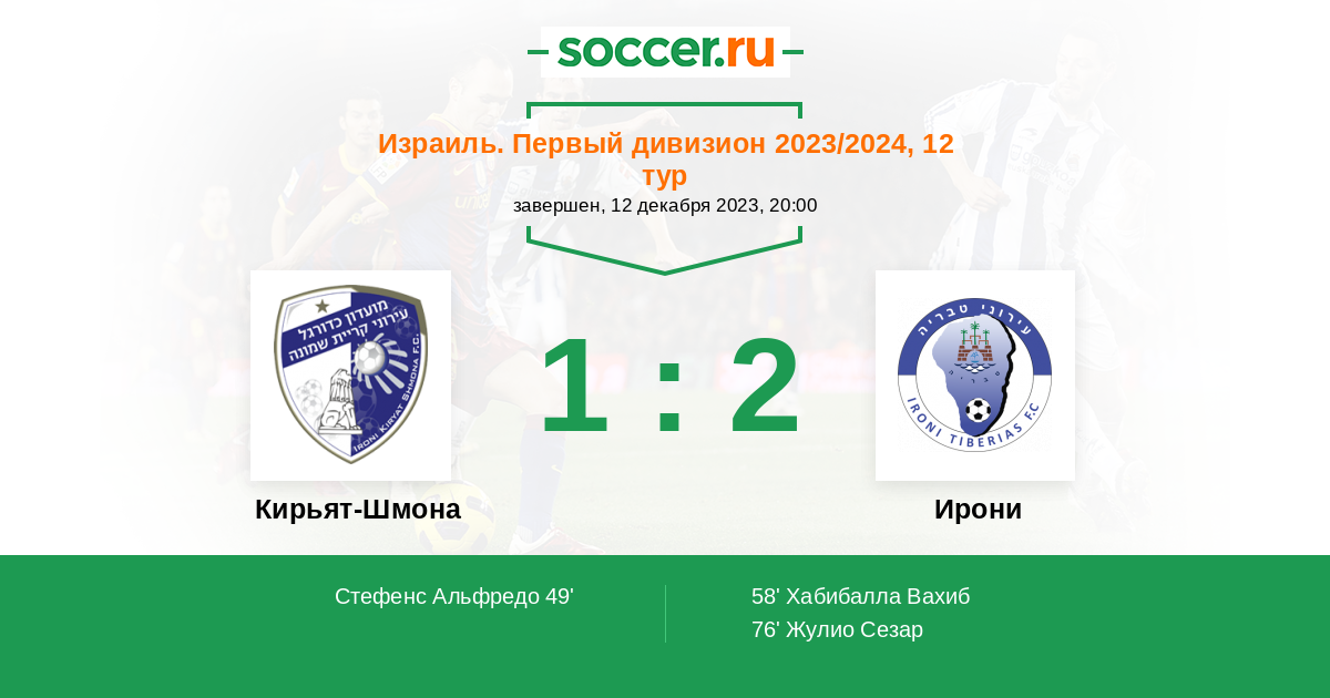 Протокол матча Кирьят-Шмона против Ирони