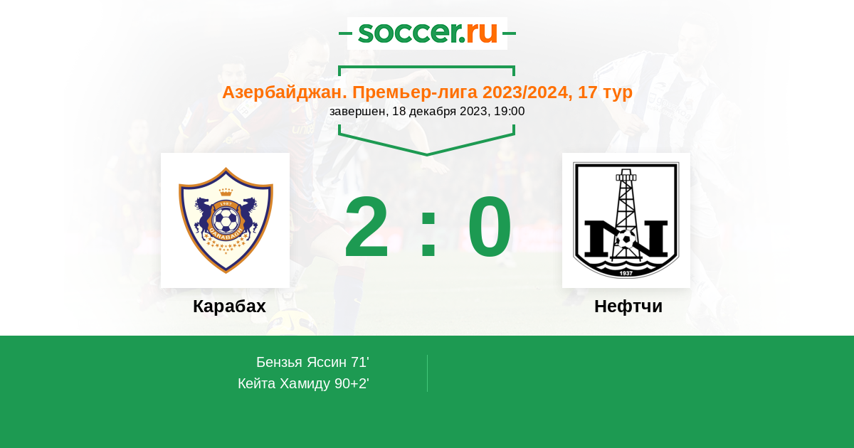Протокол матча Карабах против Нефтчи