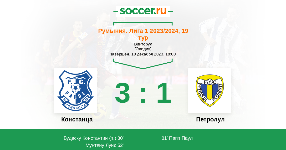 Протокол матча Фарул против Петролул