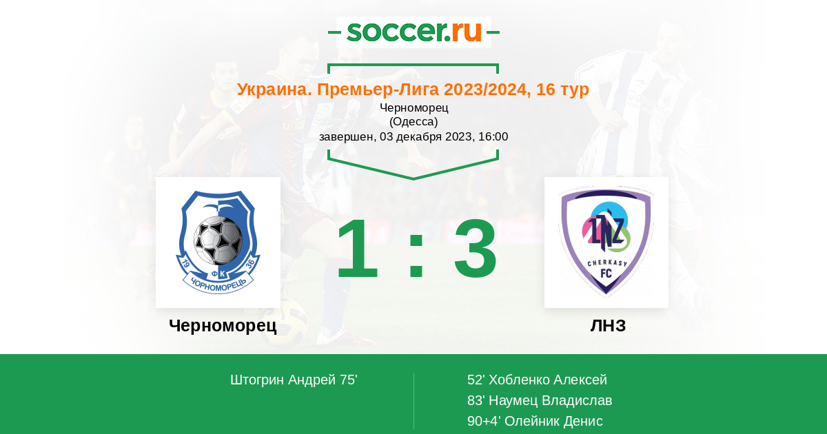 Протокол матча Черноморец против ЛНЗ
