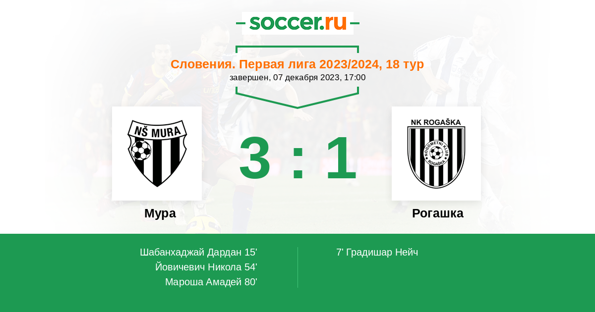 Протокол матча Мура против Рогашка