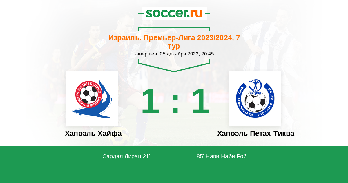 Протокол матча Хапоэль Хайфа против Хапоэль Петах-Тиква