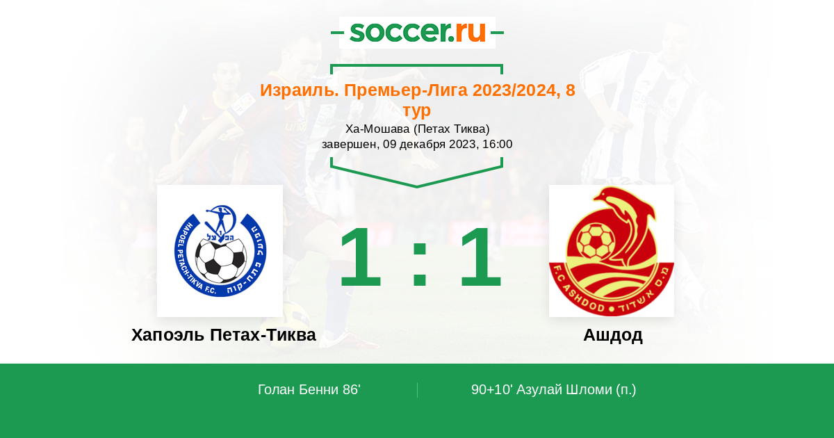 Протокол матча Хапоэль Петах-Тиква против Ашдод