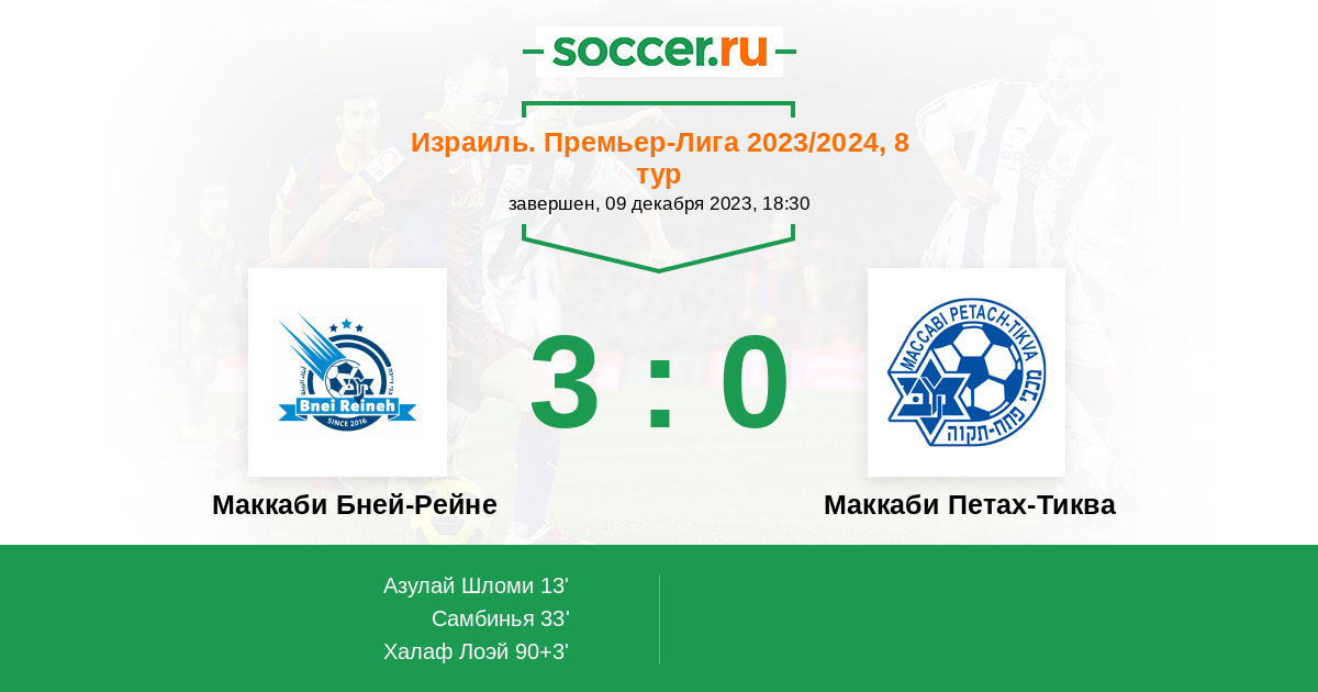 Протокол матча Маккаби Бней-Рейне против Маккаби Петах-Тиква