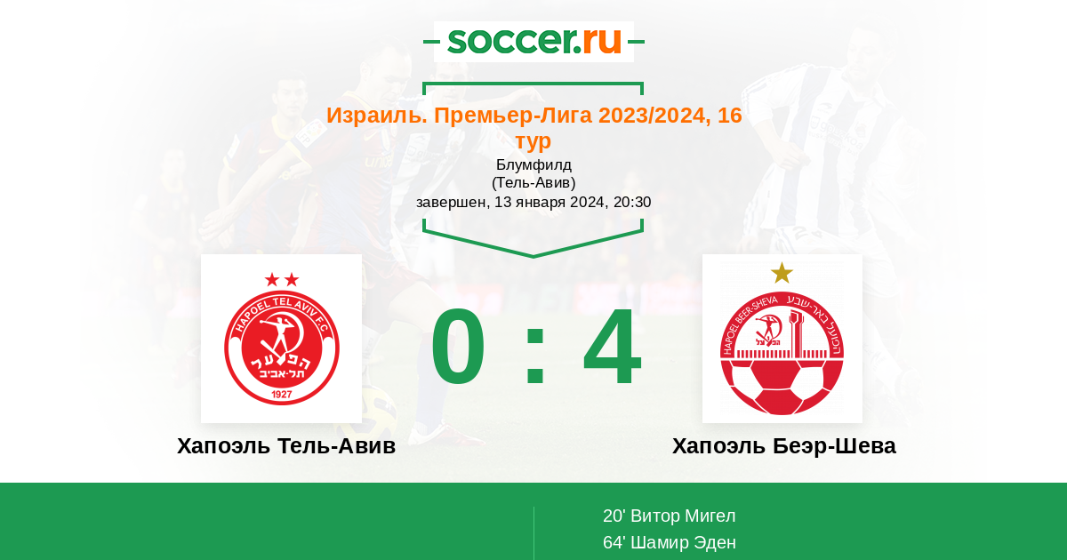 Протокол матча Хапоэль Тель-Авив против Хапоэль Беэр-Шева