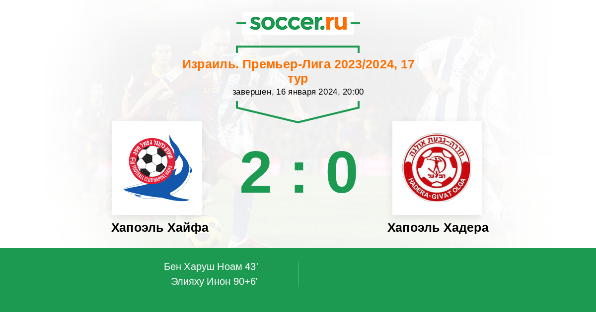 Протокол матча Хапоэль Хайфа против Хапоэль Хадера
