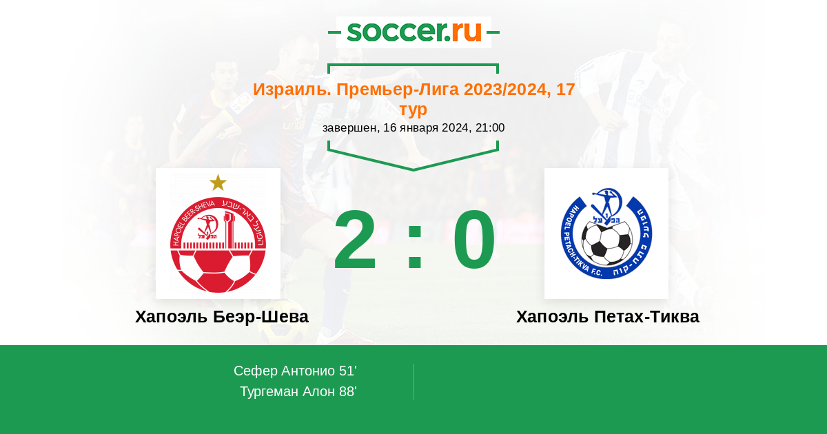 Протокол матча Хапоэль Беэр-Шева против Хапоэль Петах-Тиква
