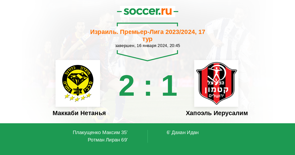 Протокол матча Маккаби Нетанья против Хапоэль Иерусалим
