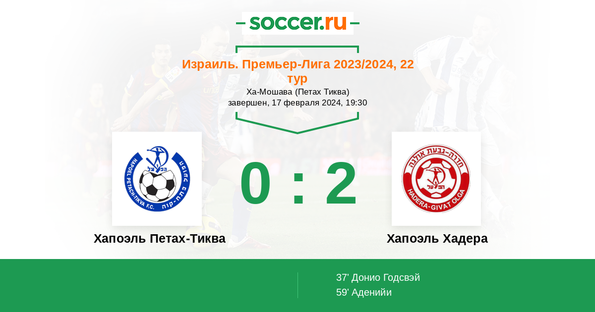 Протокол матча Хапоэль Петах-Тиква против Хапоэль Хадера