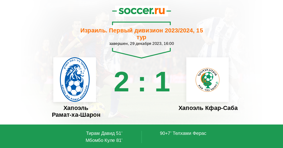 Протокол матча Хапоэль Рамат-ха-Шарон против Хапоэль Кфар-Саба