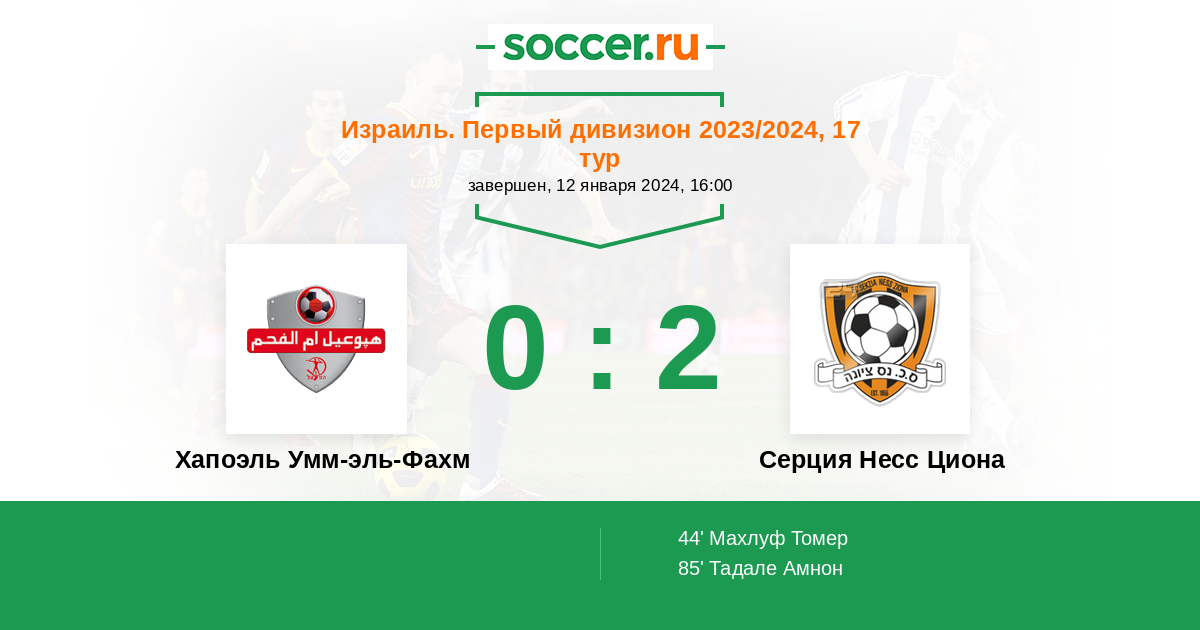 Протокол матча Хапоэль Умм-эль-Фахм против Серция Несс Циона