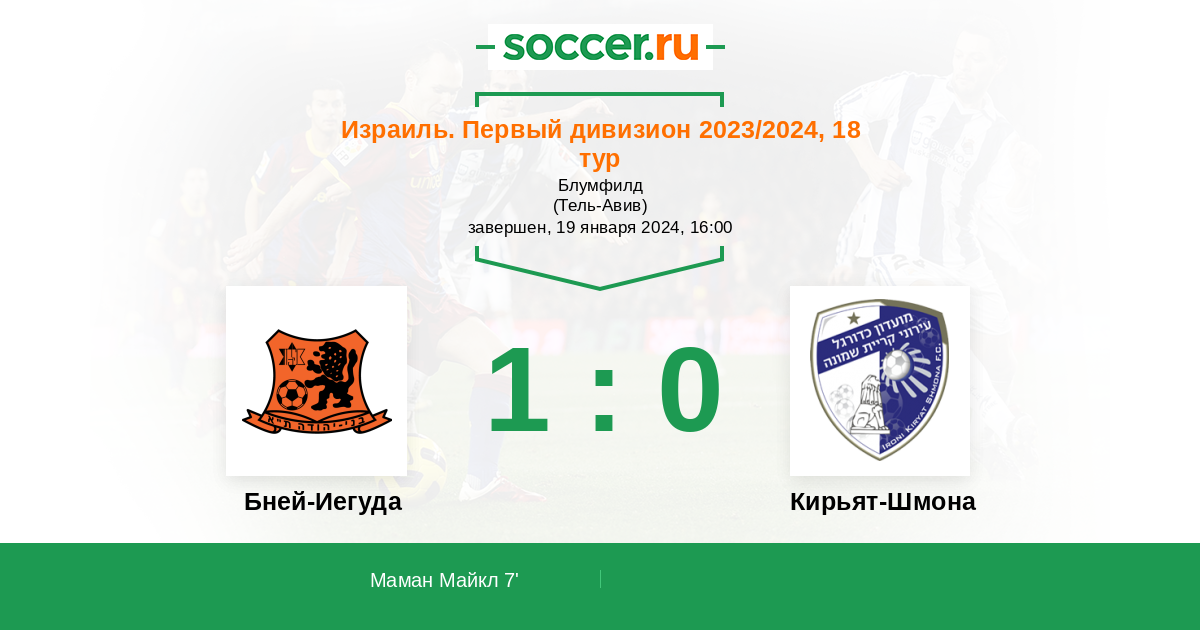 Протокол матча Бней-Иегуда против Кирьят-Шмона