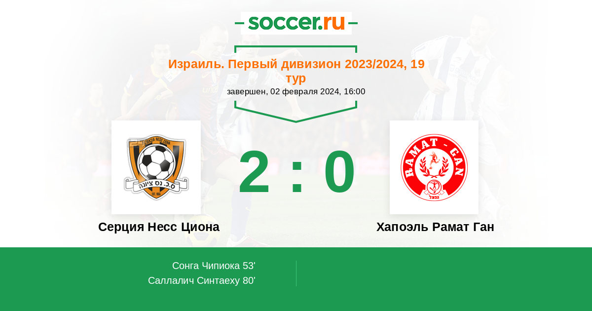 Протокол матча Серция Несс Циона против Хапоэль Рамат Ган