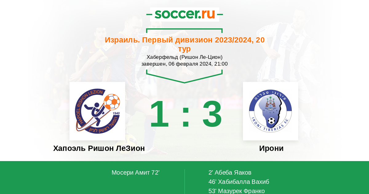 Протокол матча Хапоэль Ришон ЛеЗион против Ирони