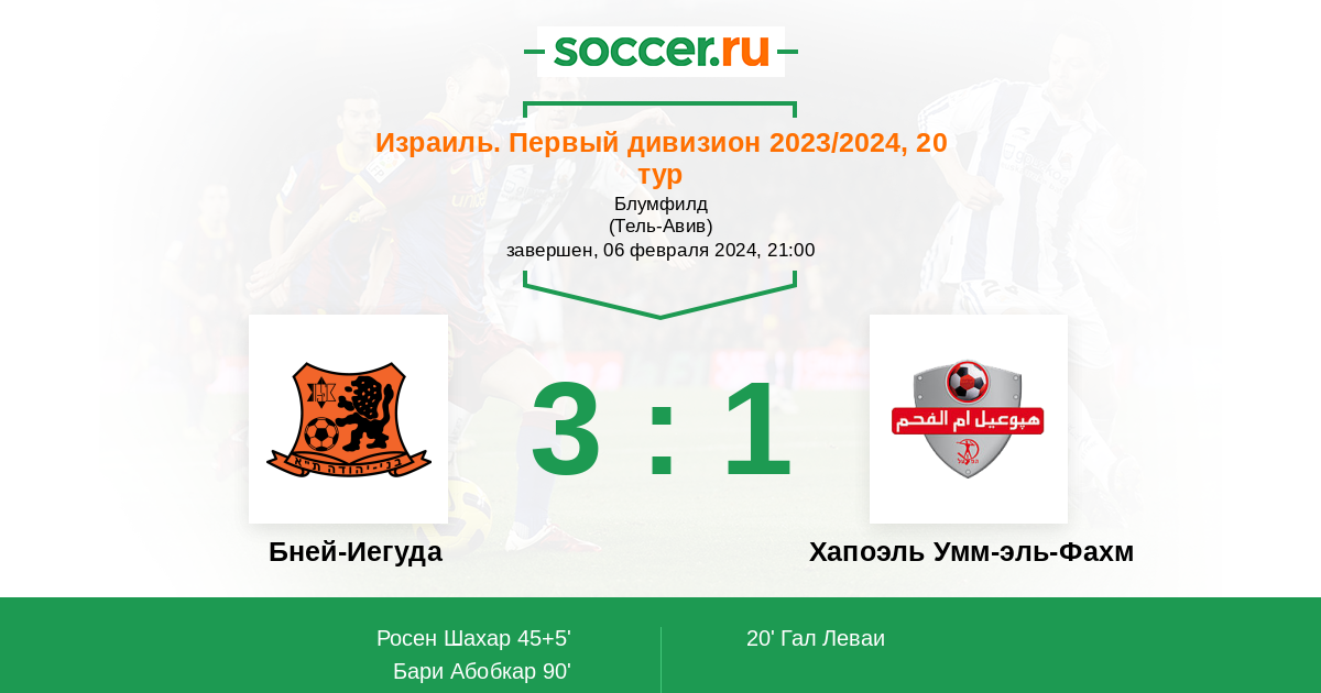Протокол матча Бней-Иегуда против Хапоэль Умм-эль-Фахм