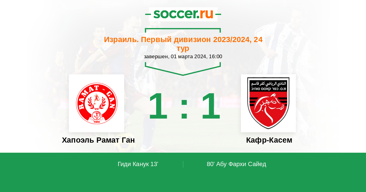 Протокол матча Хапоэль Рамат Ган против Кафр-Касем