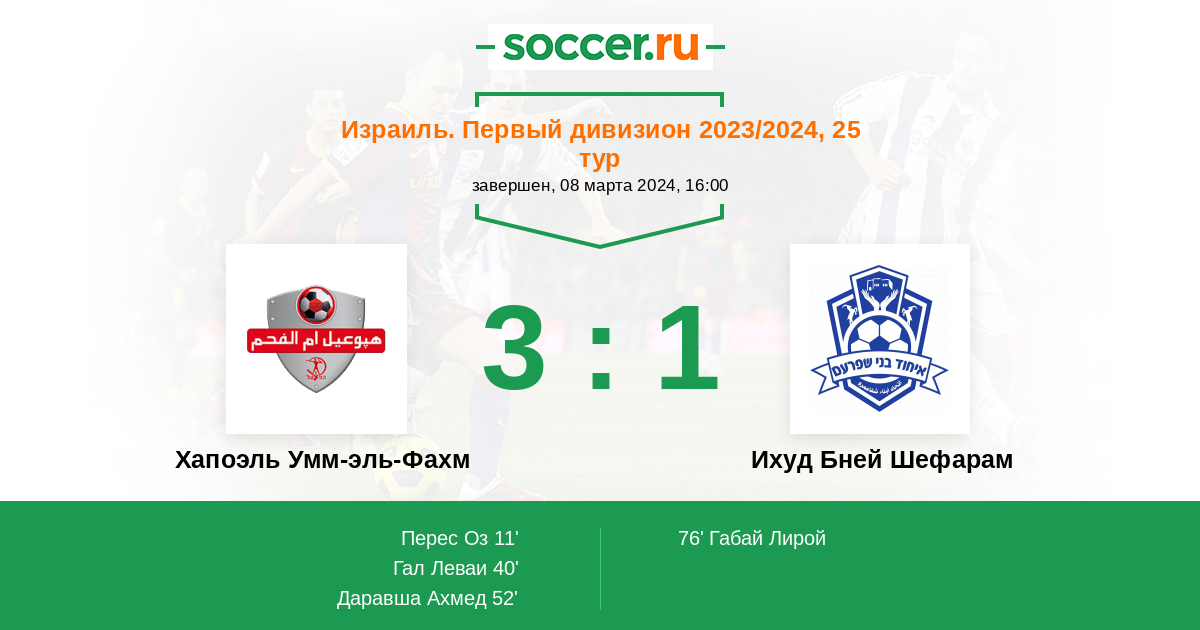 Протокол матча Хапоэль Умм-эль-Фахм против Ихуд Бней Шефарам