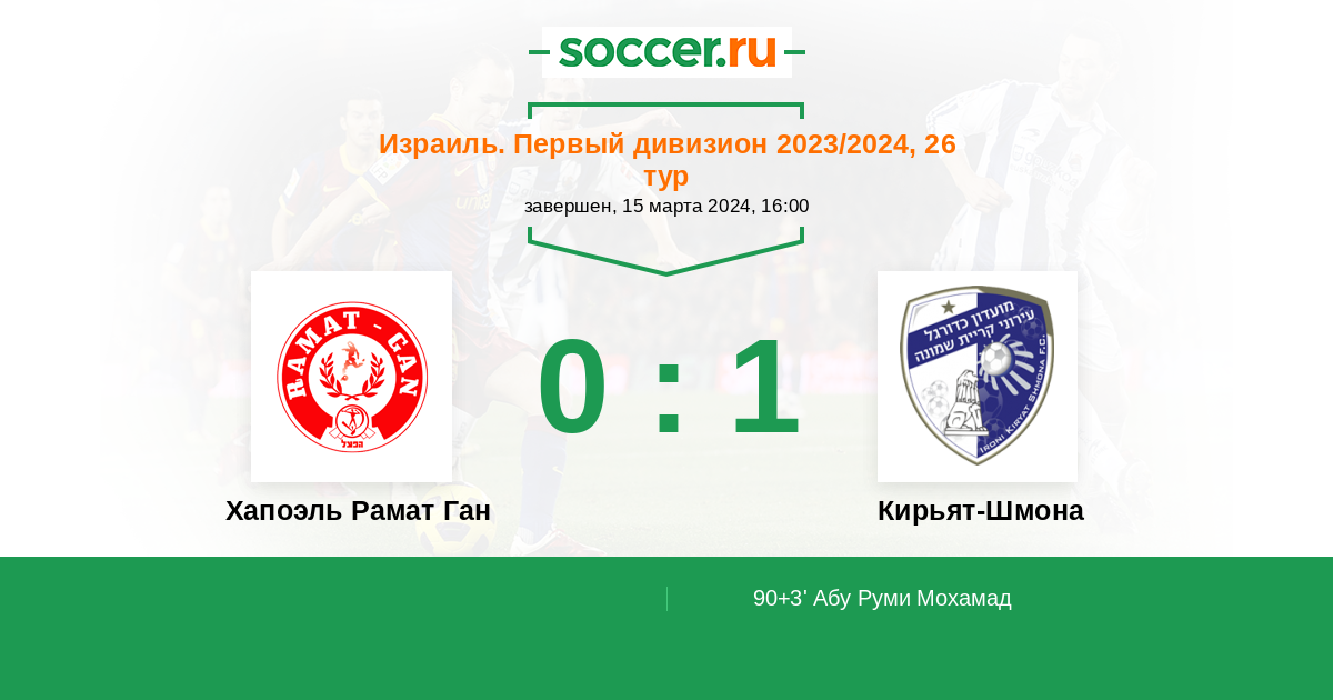 Протокол матча Хапоэль Рамат Ган против Кирьят-Шмона