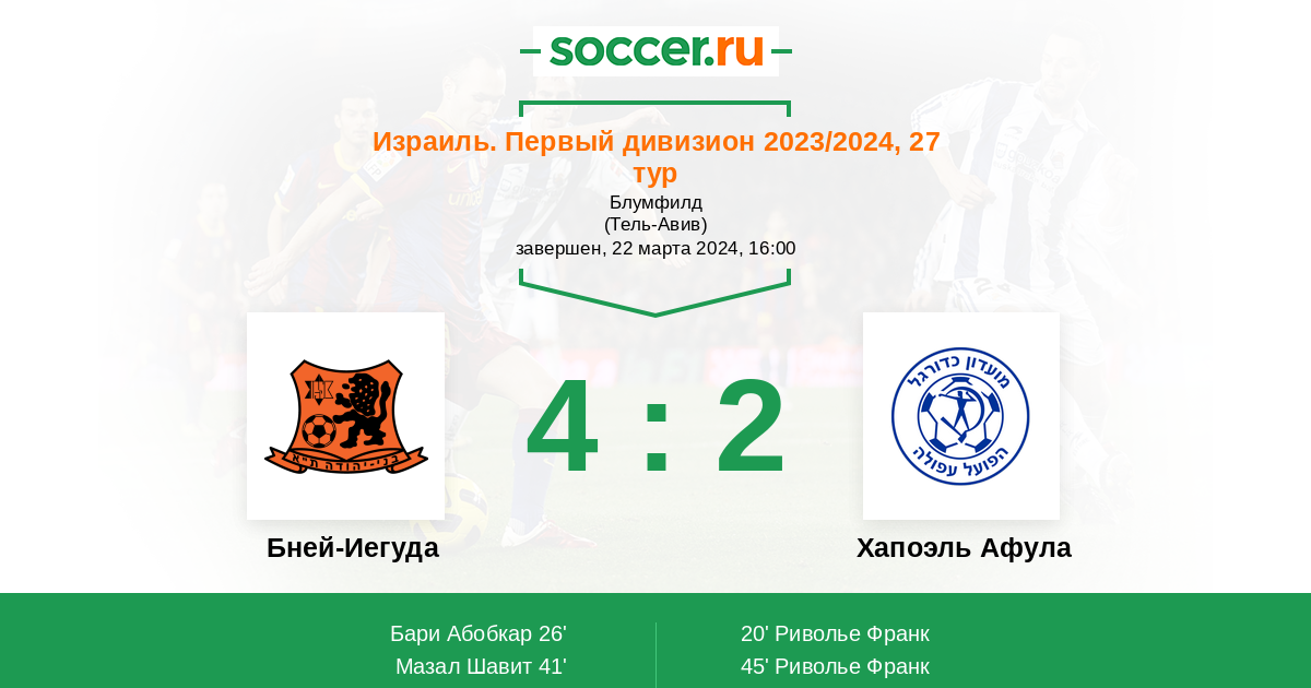 Протокол матча Бней-Иегуда против Хапоэль Афула