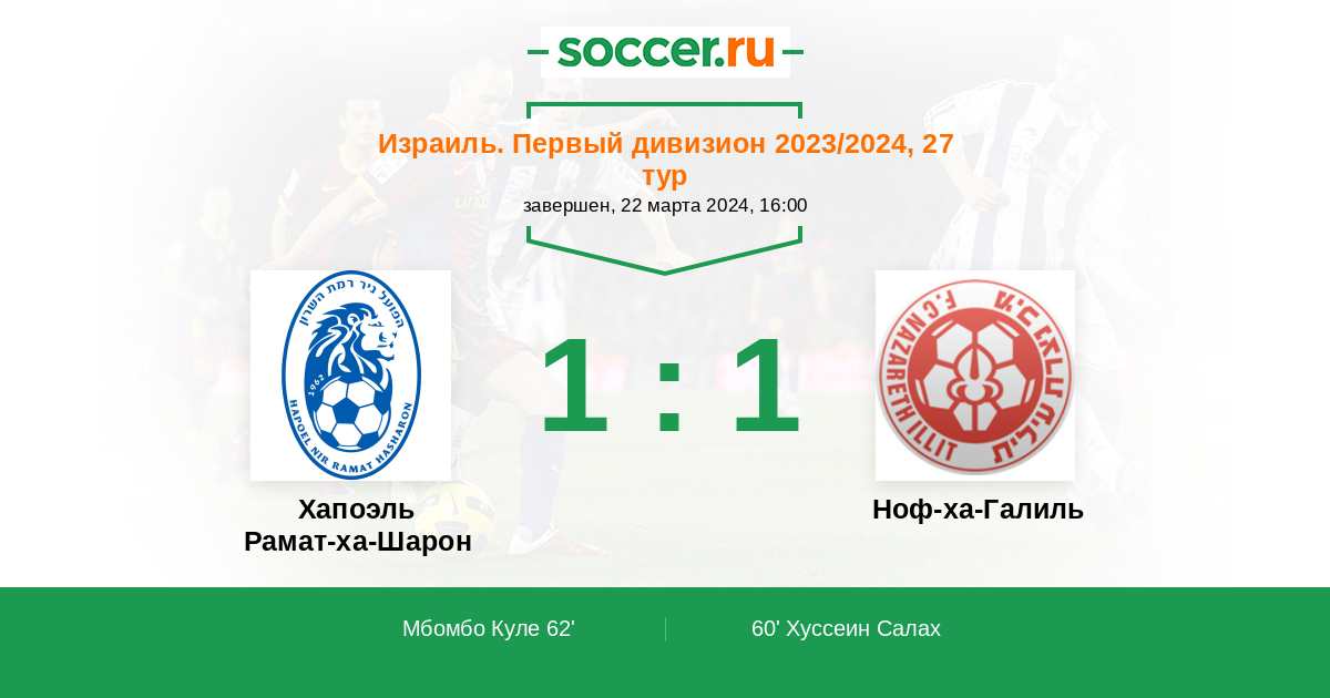 Протокол матча Хапоэль Рамат-ха-Шарон против Ноф-ха-Галиль