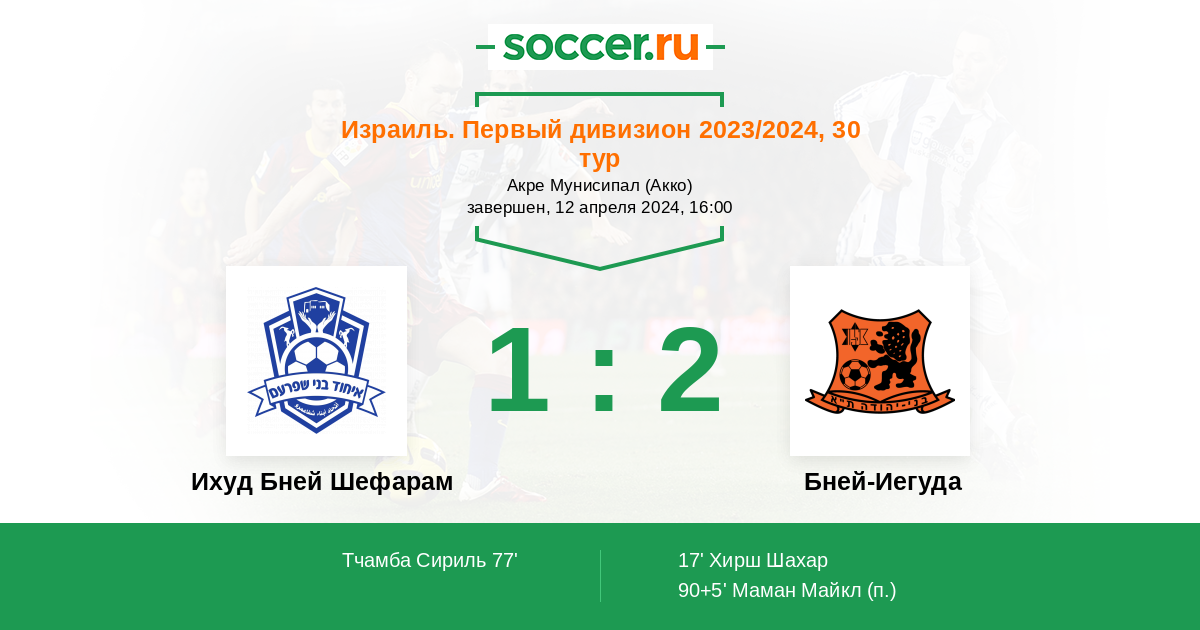 Протокол матча Ихуд Бней Шефарам против Бней-Иегуда