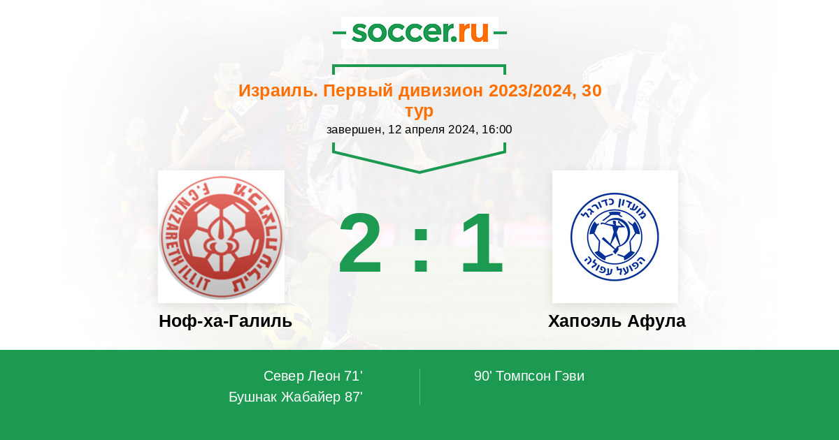 Протокол матча Ноф-ха-Галиль против Хапоэль Афула